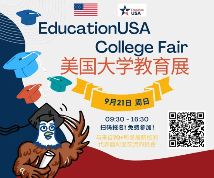EducationUSA 2025 秋季大学教育展将于今年9月举办 —— 欢迎大家扫码报名参加!